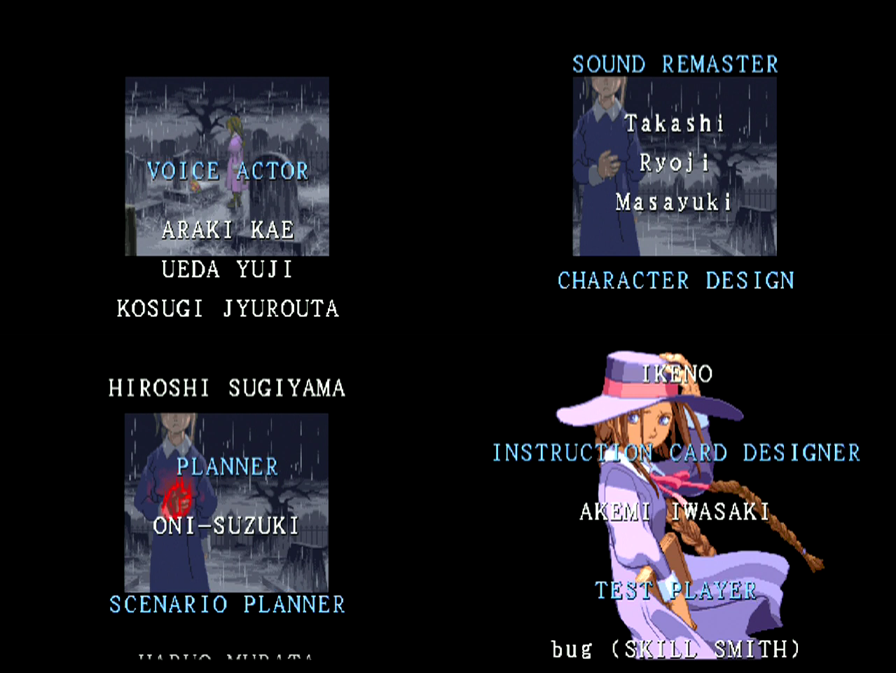 | ![]() (JP: Lei-Lei) Type:Jiangshi Origin: China (VA: Michiko Neya) who unite their soul into the form of a Jiangshi to hunt Darkstalkers and save their mother's soul.