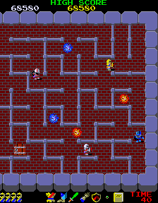 First, home ports. For a game that supposedly tanked at its American showing in arcades, you've got a lot of options for playing the game over here. There's versions of it available on Namco Museum Vol. 3 for the Playstation (which comes with robust stat-tracking and a mini-guide), Namco Museum on the PSP, Namco Museum DS on the (duh) Nintendo DS (probably the best version, as it comes with solutions on the bottom screen), Namco Museum: Virtual Arcade for the Xbox 360, and finally, you can download it for 500 Wii Points from the Virtual Console Arcade. That's a lot of options, at least compared to its superior sequel (Return of Ishtar is only on Namco Museum Vol. 4), so you have no excuse.