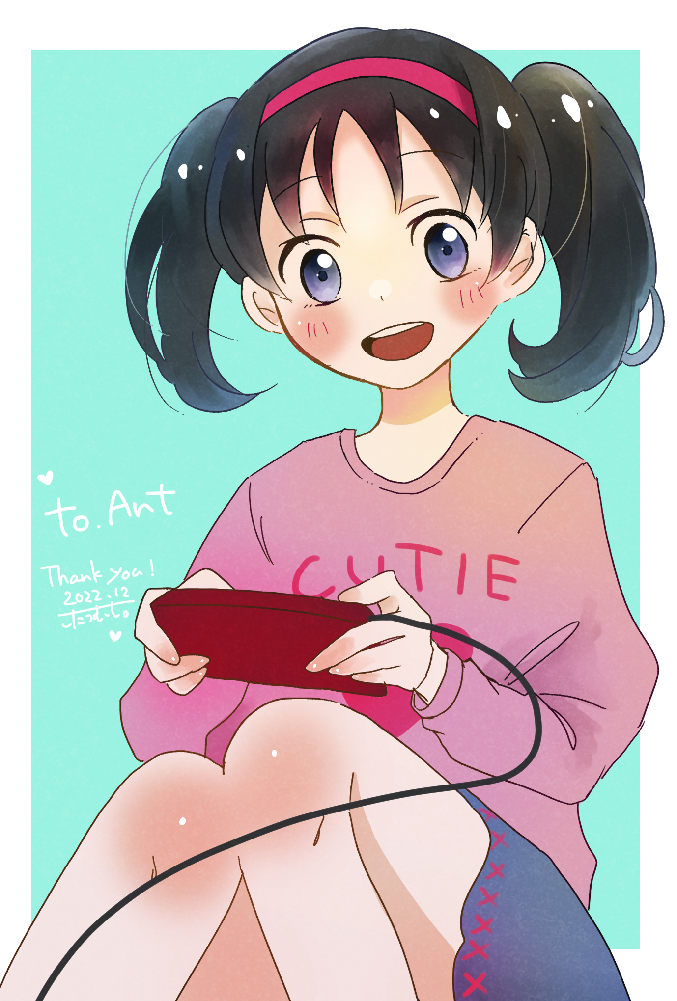 And the first Skeb of the year, from 1150_coco it's Sarah playing the Famicom!