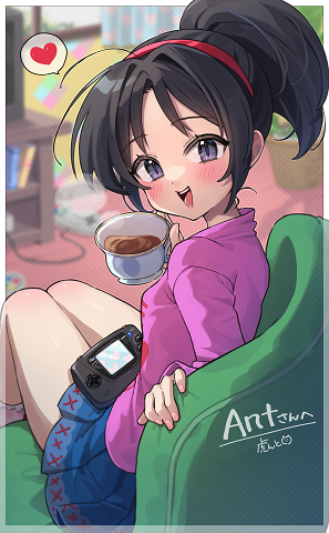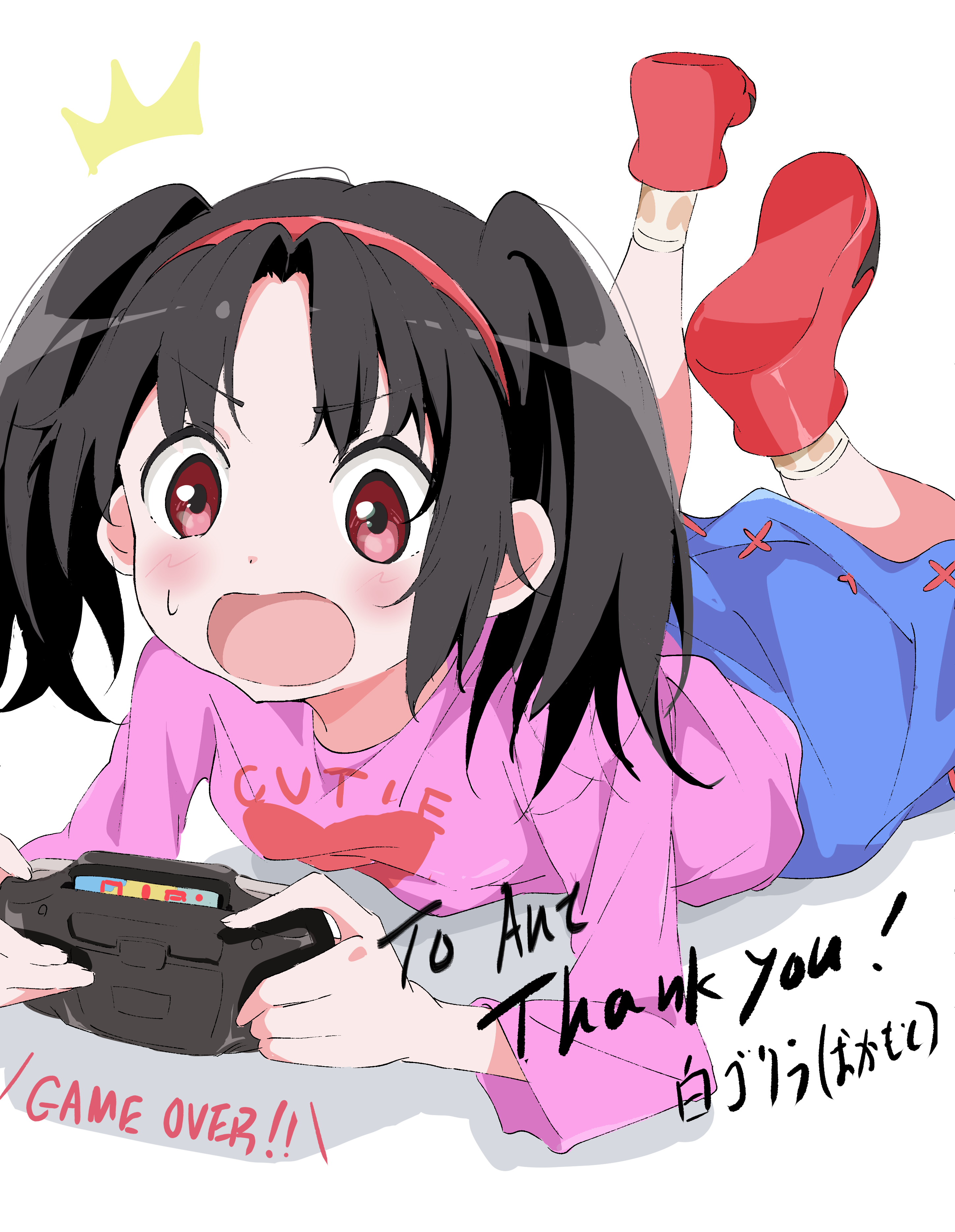 ... More Skeb art? Yeah, sure, let's go. First, courtesy of Messi Illustration, Sowertty's having some quality time with her Game Gear: