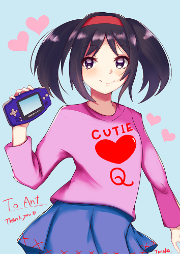 The first Skeb art of Year 16 comes courtesy of gan2, Sowertty's back on her Game Gear again: