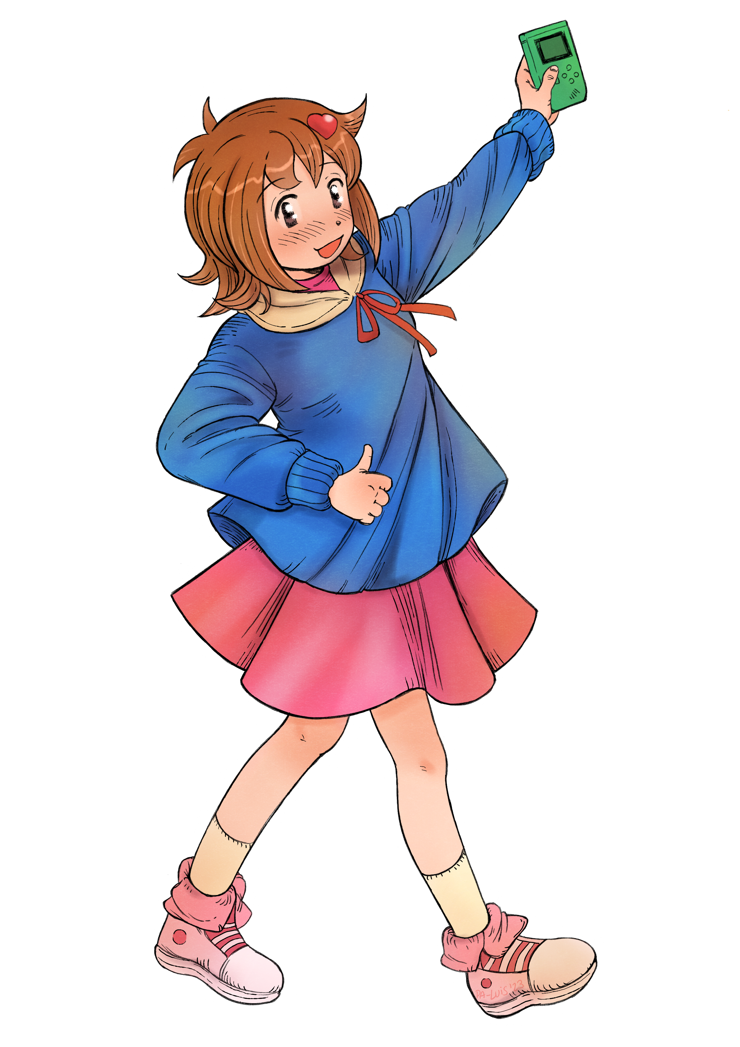 Skeb art time again! This time, courtesy of yzw_mmtr, Sowertty's showing off her Game Boy:
