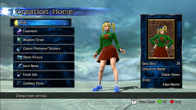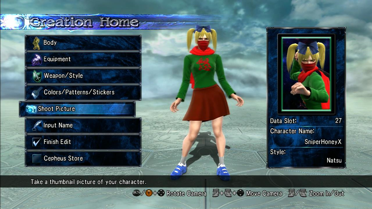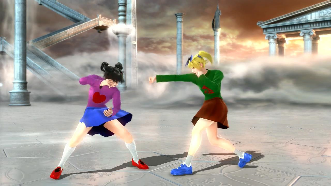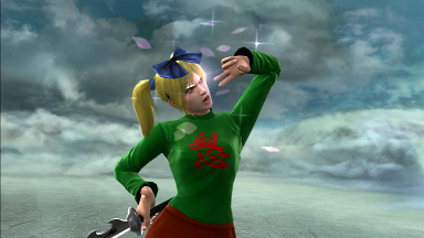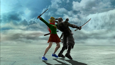 Oh, and Ultra Powerful Pal of Gaming Hell, HokutoNoShock returns to the updates page with a new Soul Calibur V character... Our secret mascot, Sniper Honey! In both normal and ninja versions. Here's the screenshots below, including two non-canon shots of... A powerful battle?!