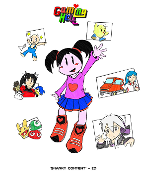 !['Hello there, it's me, Sarah S. Sowertty, official mascot of Gaming Hell, popping by to say thanks to our friend Liam Ashcroft here for his great piece for our birthday! Of course, it's not ~my~ birthday- just the site- but it sure feels like it is! I really like my shoes here, and he's got all the bits that make Gaming Hell... Gaming Hell! Thanks again, friend! Anyway, cheery-bye for now!'